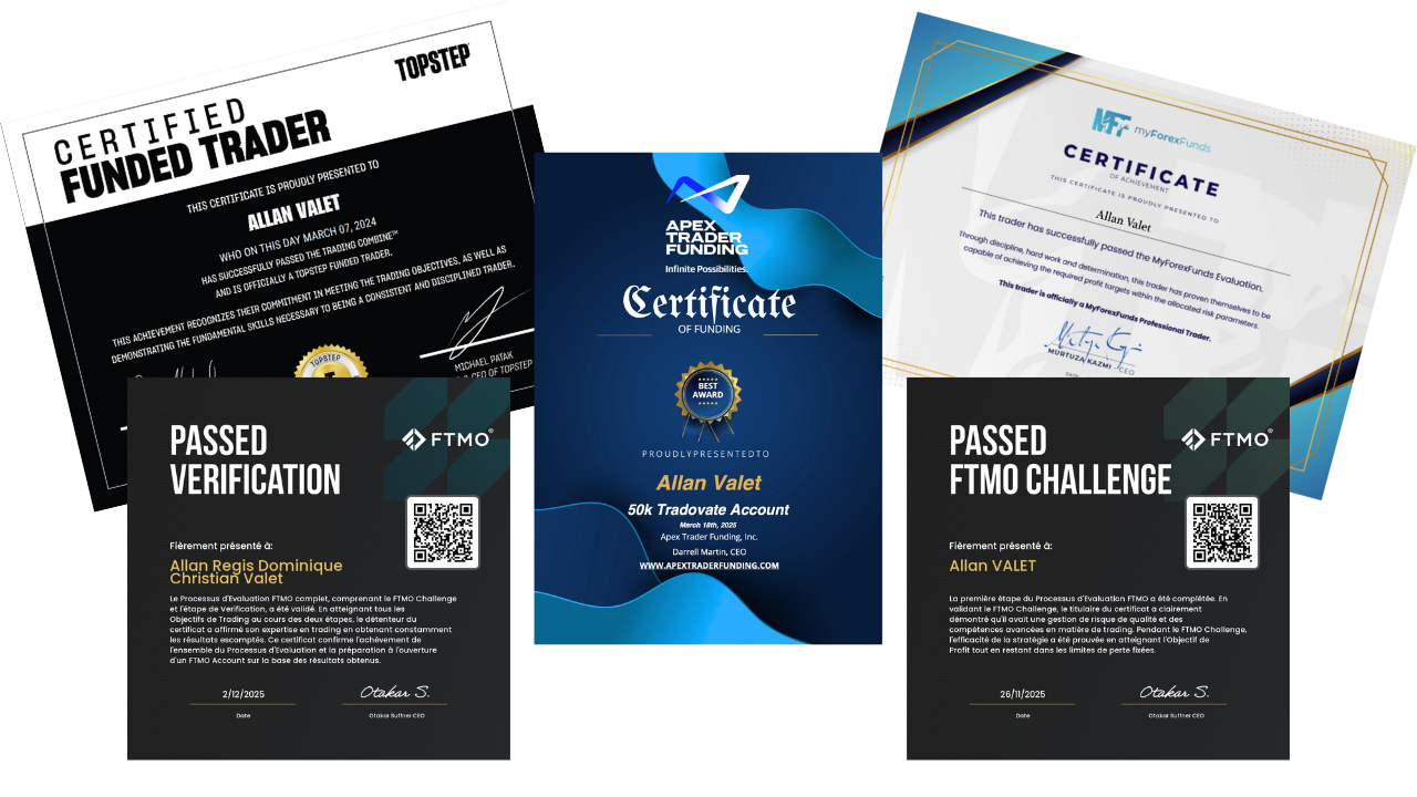 Formé aux stratégies quantitatives et à la gestion du risque, il a développé une approche disciplinée validée par plusieurs prop firm challenges réussis.